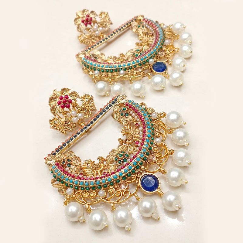 The Aarohi Heritage Chandbali Earrings are a timeless expression of traditional craftsmanship, featuring intricate hand-carved motifs, layered stone detailing, and graceful pearl drops. Designed in a classic crescent silhouette, these earrings blend regal elegance with festive charm, making them perfect for weddings, formal events, and cultural celebrations. Available in multiple color variations, this versatile pair complements both traditional and contemporary outfits beautifully.