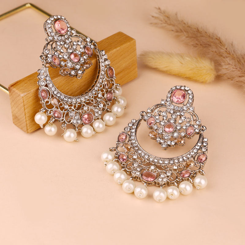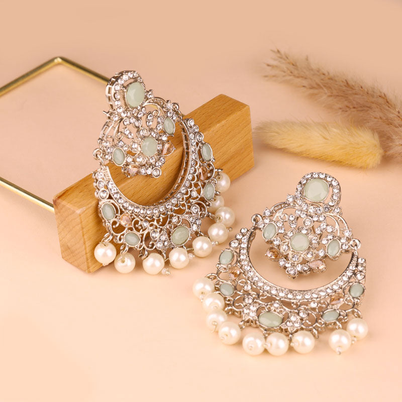 Elevate your look with Facet’s Nooré Nazakat Chaandbali earrings — a stunning fusion of shimmering stones, radiant pearls, and intricate filigree craftsmanship. These timeless earrings capture regal sophistication, ideal for weddings, festive occasions, and elegant soirées. Available in multiple color options to complement every style.