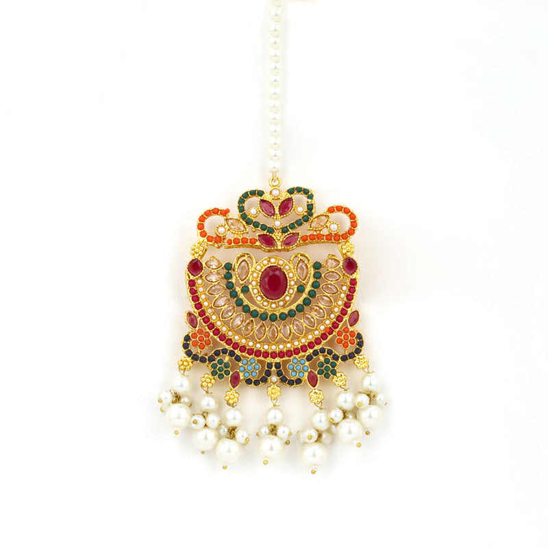 Adorn yourself with Facet’s Mughal Radiance jewelry set — a masterpiece inspired by royal heritage. Handcrafted with vibrant multicolor stones, intricate enamel work, and delicate pearl drops, this set captures timeless grandeur. Available in multiple color options, it’s perfect for weddings, festive occasions, and traditional celebrations that call for regal elegance.