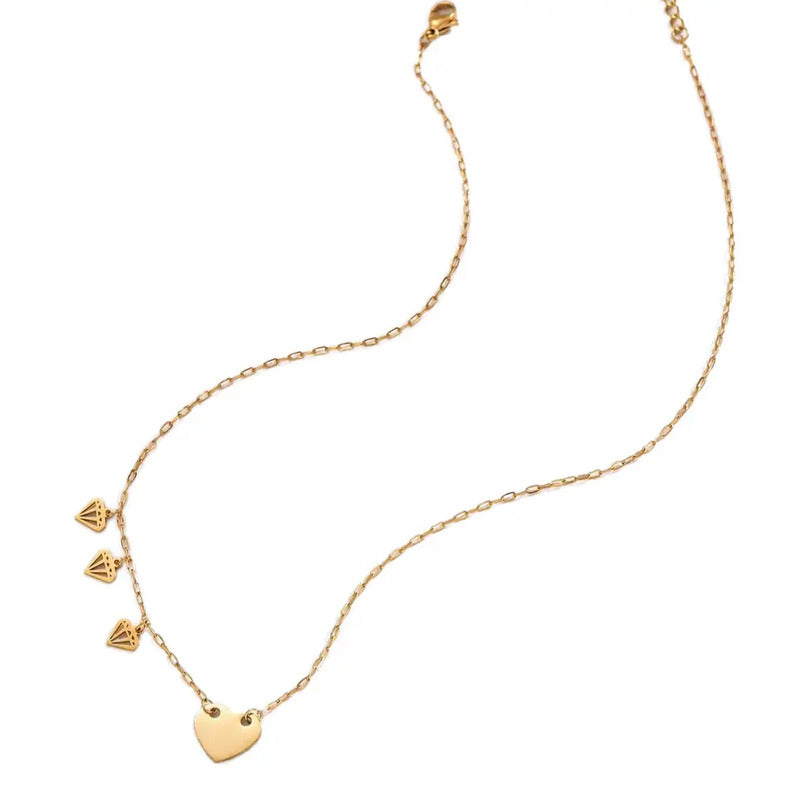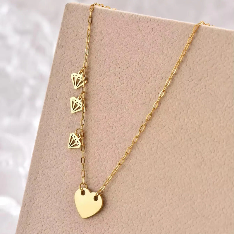 Add a touch of charm to your everyday look with this dainty gold-plated necklace featuring a smooth heart pendant and diamond-cut charm accents. Lightweight, elegant, and perfect for layering or gifting.