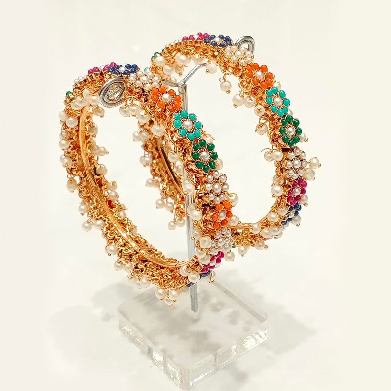 The Riwaayat Pearl & Bead Heritage Bangles are beautifully handcrafted statement bangles adorned with delicate pearls and finely arranged beads, creating a rich traditional appeal. Designed for festive and formal wear, these bangles offer a graceful balance of elegance and heritage craftsmanship. Lightweight yet eye-catching, they pair effortlessly with bridal, festive, and ethnic outfits. Available in multiple color variations, making them a versatile addition to any jewelry collection.