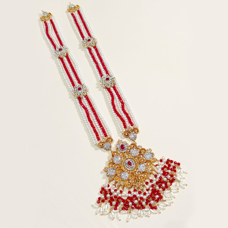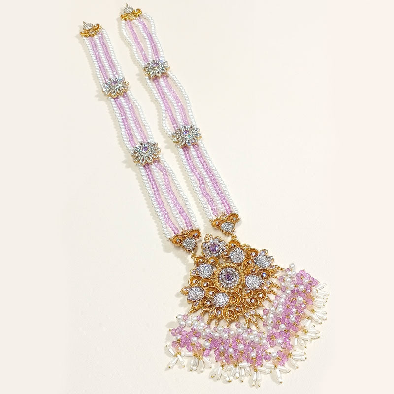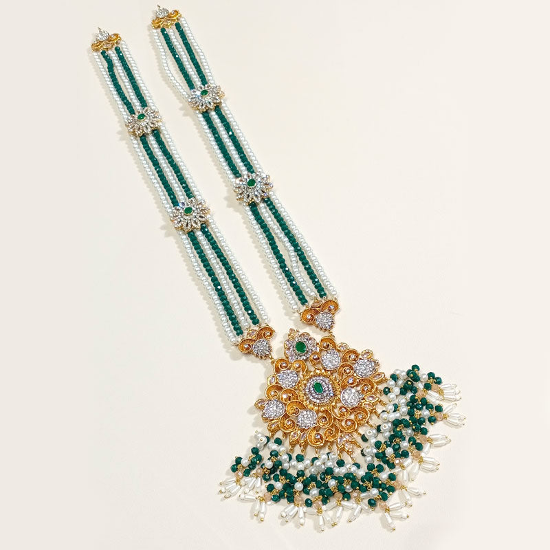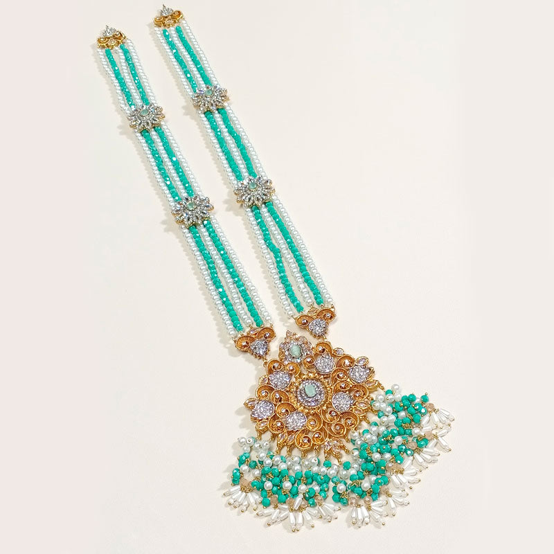 The Shahana Royal Mala Jewelry Set is a statement traditional ensemble featuring a detailed mala necklace. Designed for brides and formal occasions, this handcrafted set reflects classic elegance and heritage charm while being available in multiple color variations.
