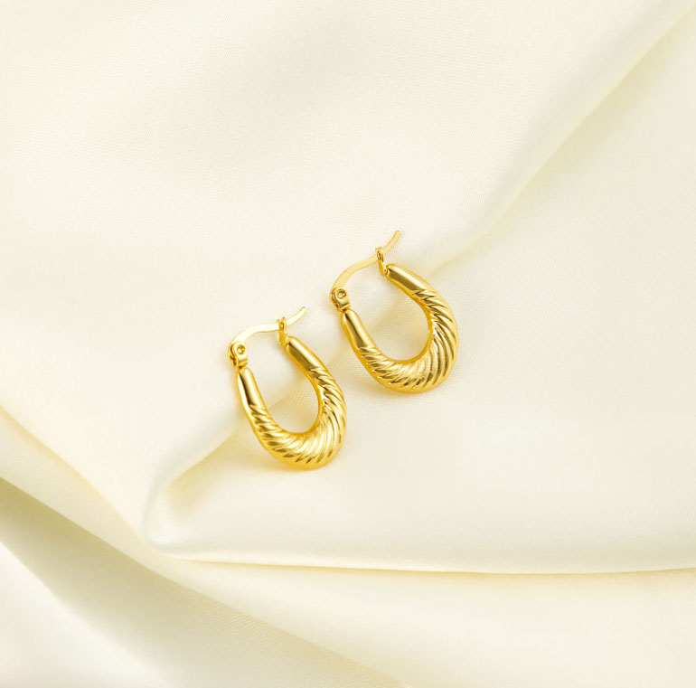 Timeless with a twist, our Twist Texture Classic Gold Hoop Earrings feature a gently curved teardrop silhouette with engraved swirl detailing. Their rich gold-tone finish, and lightweight build make them perfect for everyday elegance or festive occasions. Secure latch back for comfortable wear.